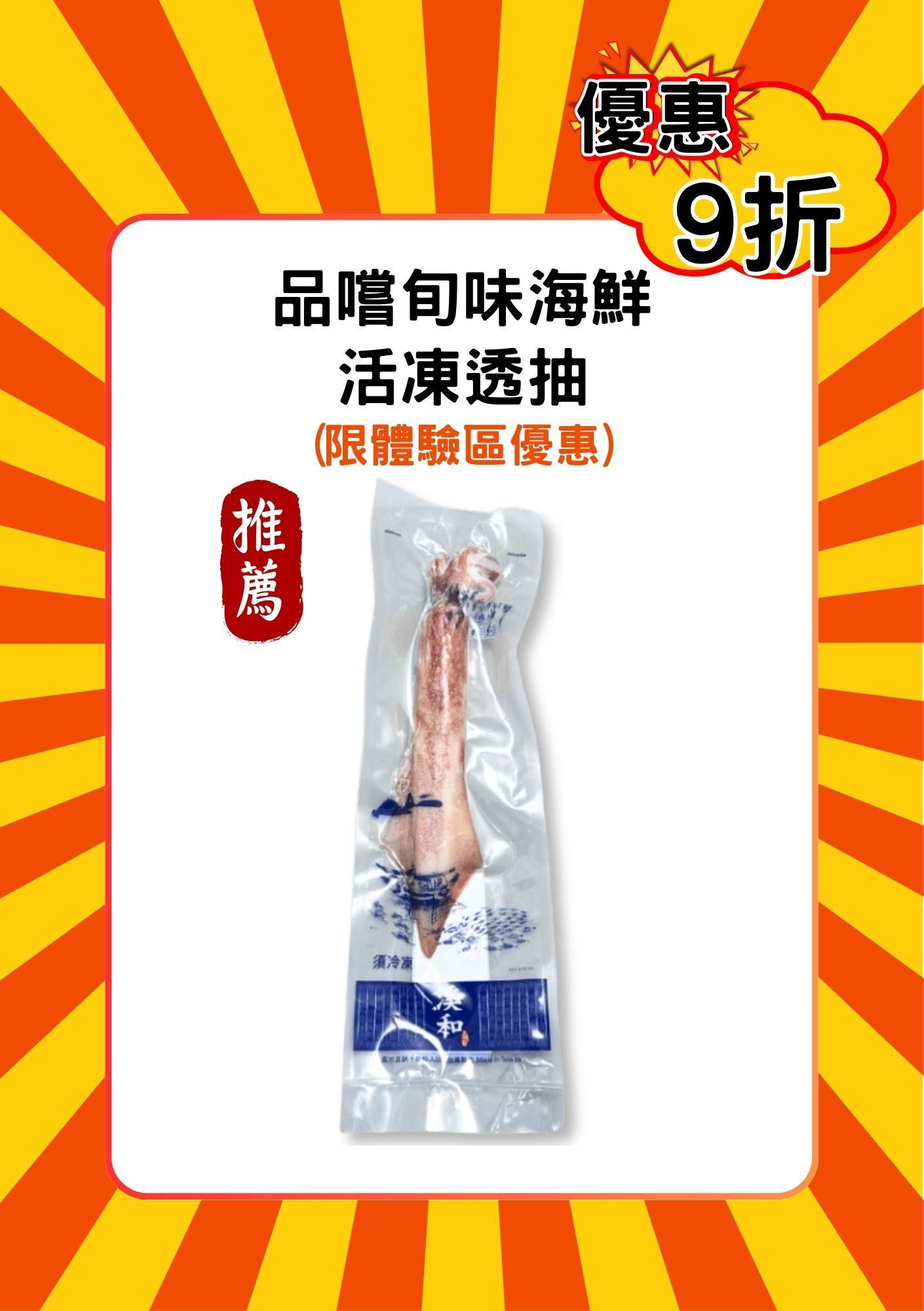 假日來逛水產市集滿$2200即享免運!9折體驗價汆燙新鮮道地的透抽~