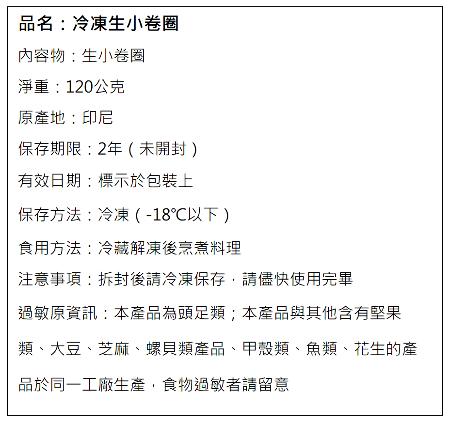 冷凍生小卷圈120g