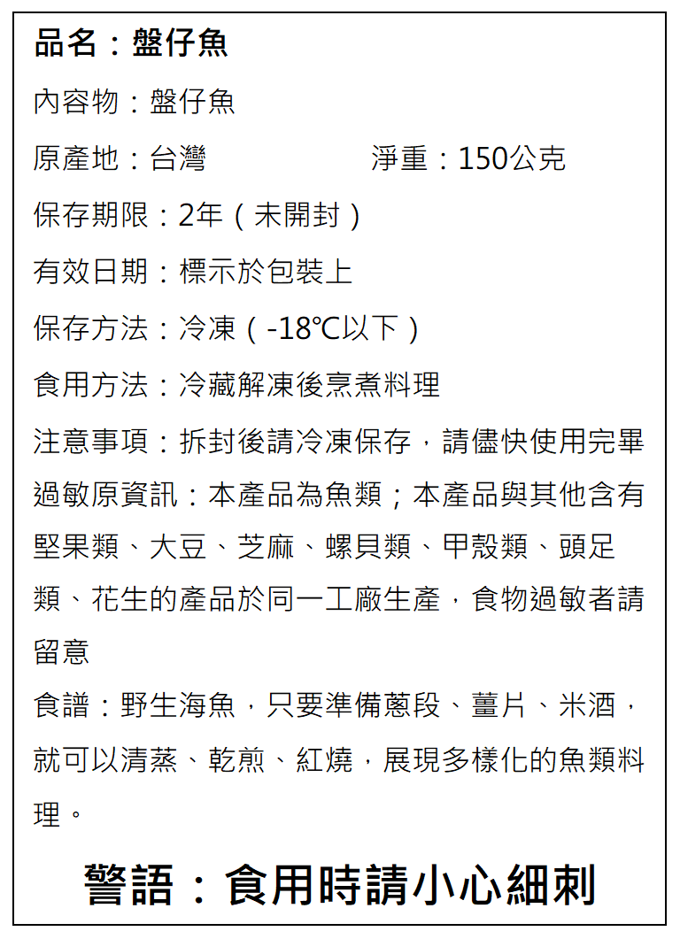 3.本產品未經調味(生鮮),不含重金屬,可安心食用。食用時請小心魚刺。