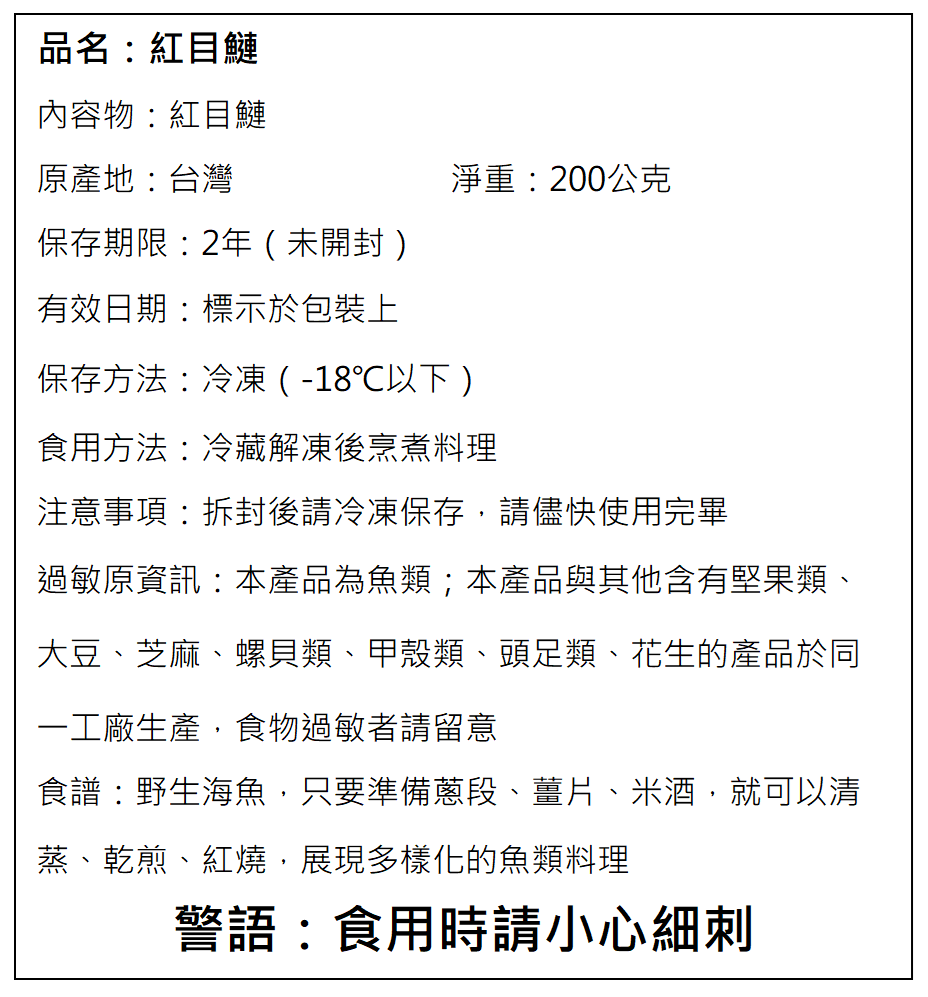 3.本產品未經調味(生鮮),不含重金屬,可安心食用。食用時請小心魚刺。