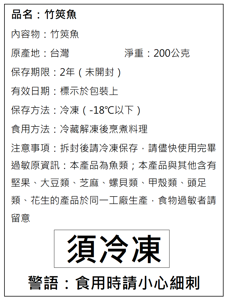 3.本產品未經調味(生鮮),不含重金屬,可安心食用。食用時請小心魚刺。