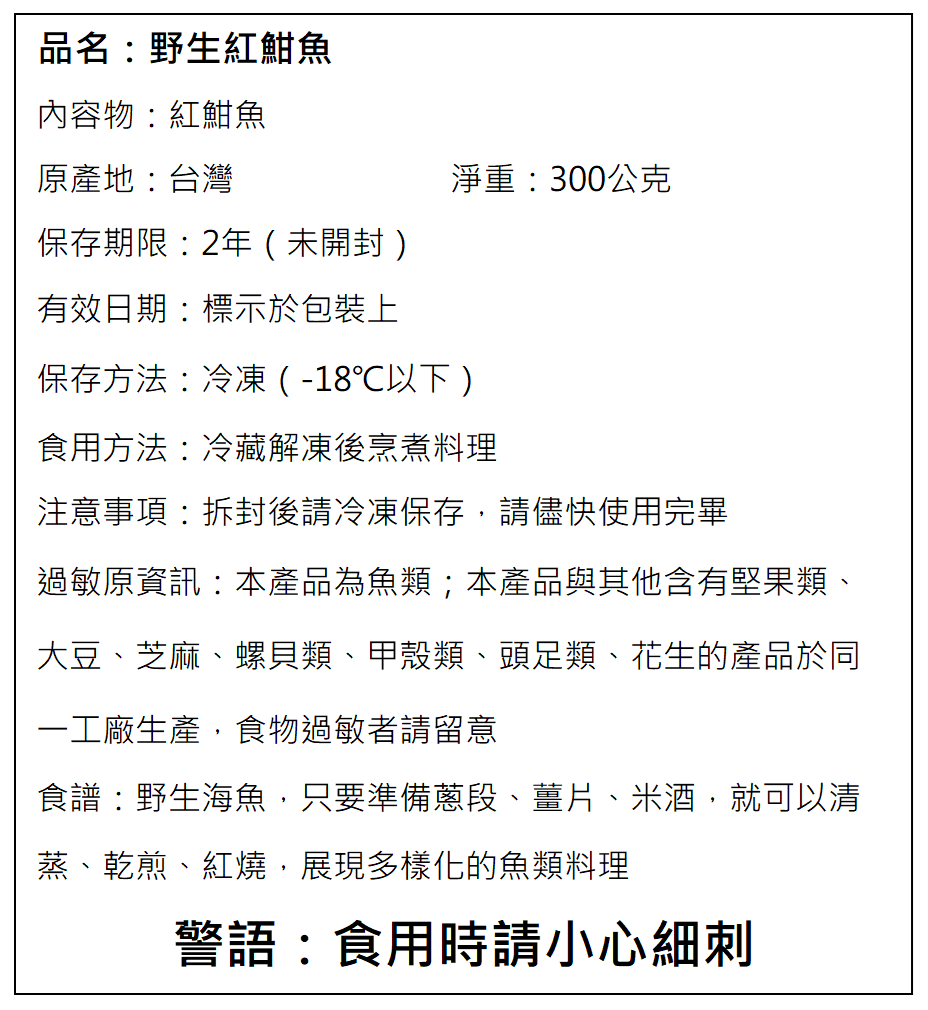 3.本產品未經調味(生鮮),不含重金屬,可安心食用。食用時請小心魚刺。