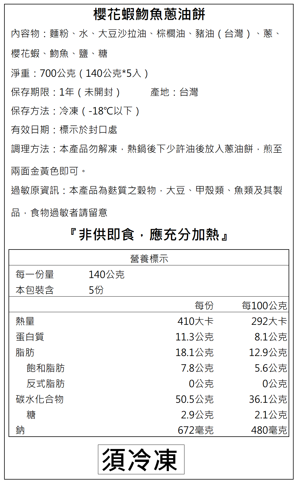 2.本產品為麩質之穀物、大豆、甲殼類、魚類及其製品,食物過敏者請留意。