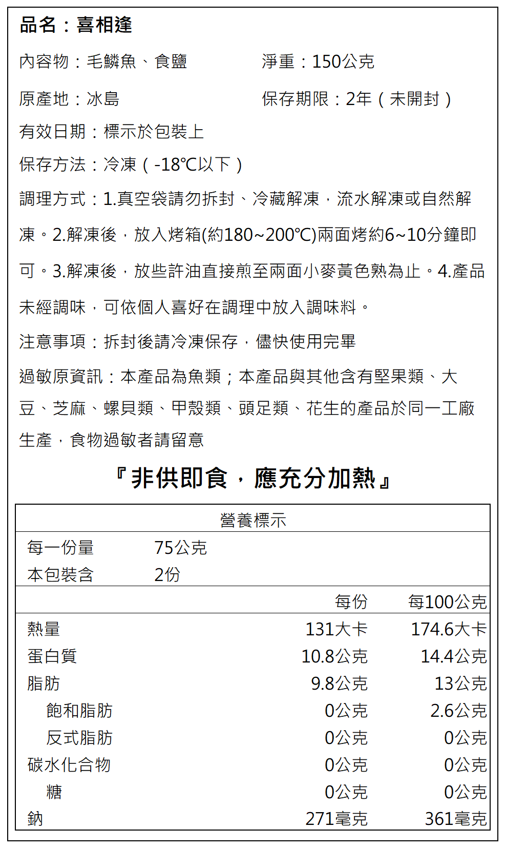 3.本產品未經調味(生鮮),不含重金屬,可安心食用。食用時請小心魚刺。