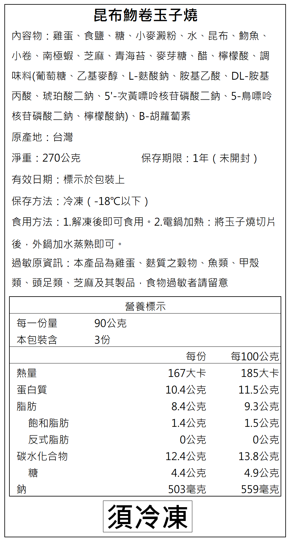 2.本產品為雞蛋、麩質之穀物、魚類、芝麻及其製品,食物過敏者請留意。