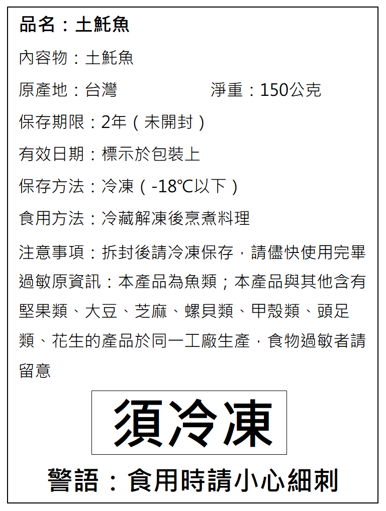 3.本產品未經調味(生鮮),食用時請小心魚刺。