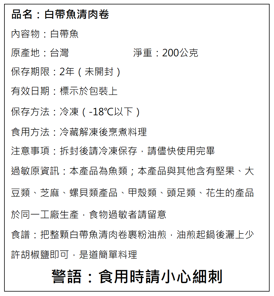 3.本產品未經調味(生鮮),不含重金屬,可安心食用。食用時請小心魚刺。