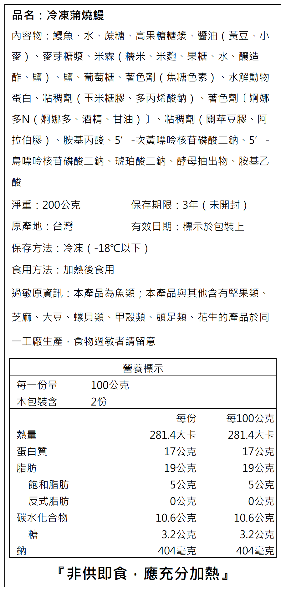 2.本產品無須解凍,非供即食應充分加熱,因產品表面有醬汁,加熱溫度請勿過高避免燒焦。食材請盡速食用完畢,切勿反覆解凍結凍,影響品質及鮮度。